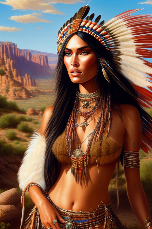portrait photograph of Madison Beer as Pocahontas, young beautiful native american woman, perfect symmetrical face, indigenes feather jewelry, traditional handmade dress, armed female hunter warrior, (((wild west))) environment, Utah landscape, ultra realistic, concept art, elegant, ((intricate)), ((highly detailed)), depth of field, ((professionally color graded)), soft ambient lighting, dusk, 8k, art by artgerm and greg rutkowski and alphonse mucha